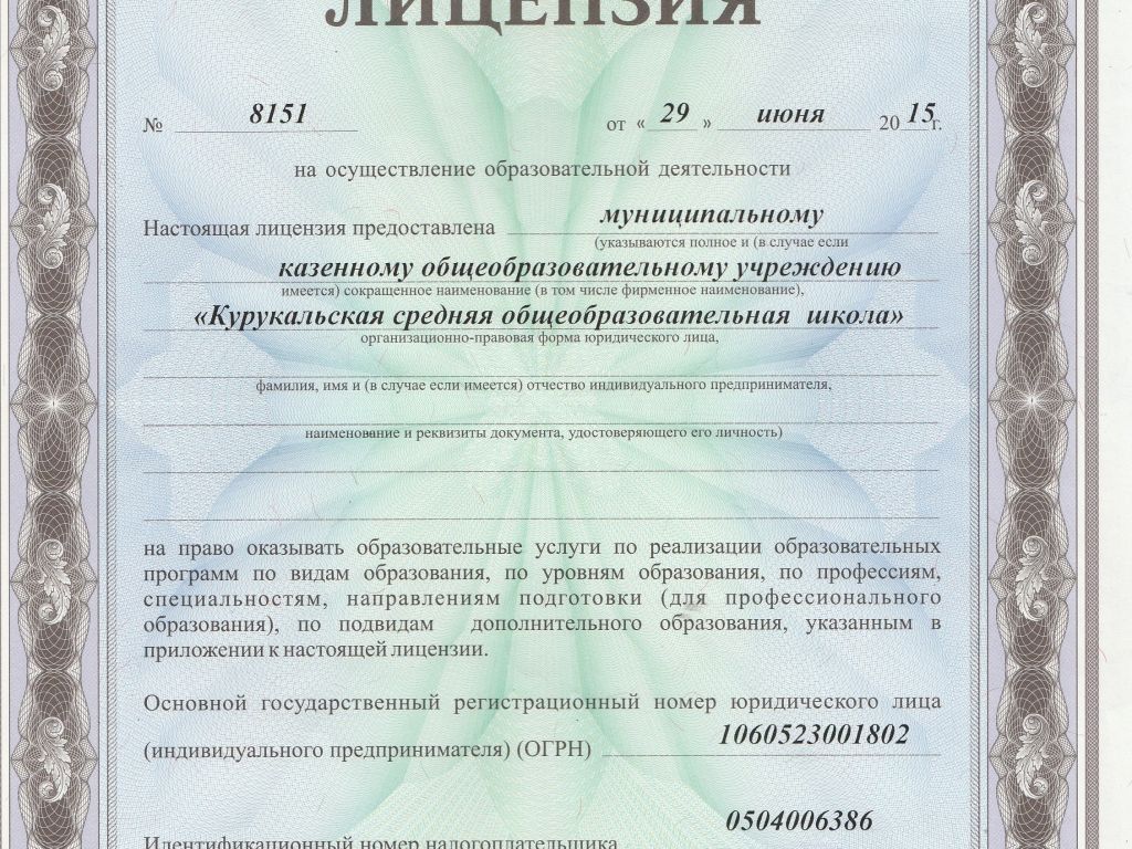 | Полное наименование образовательной организации* | Муниципальное казенное общеобразовательное учреждение «Курукальская средняя общеобразовательная школа» |